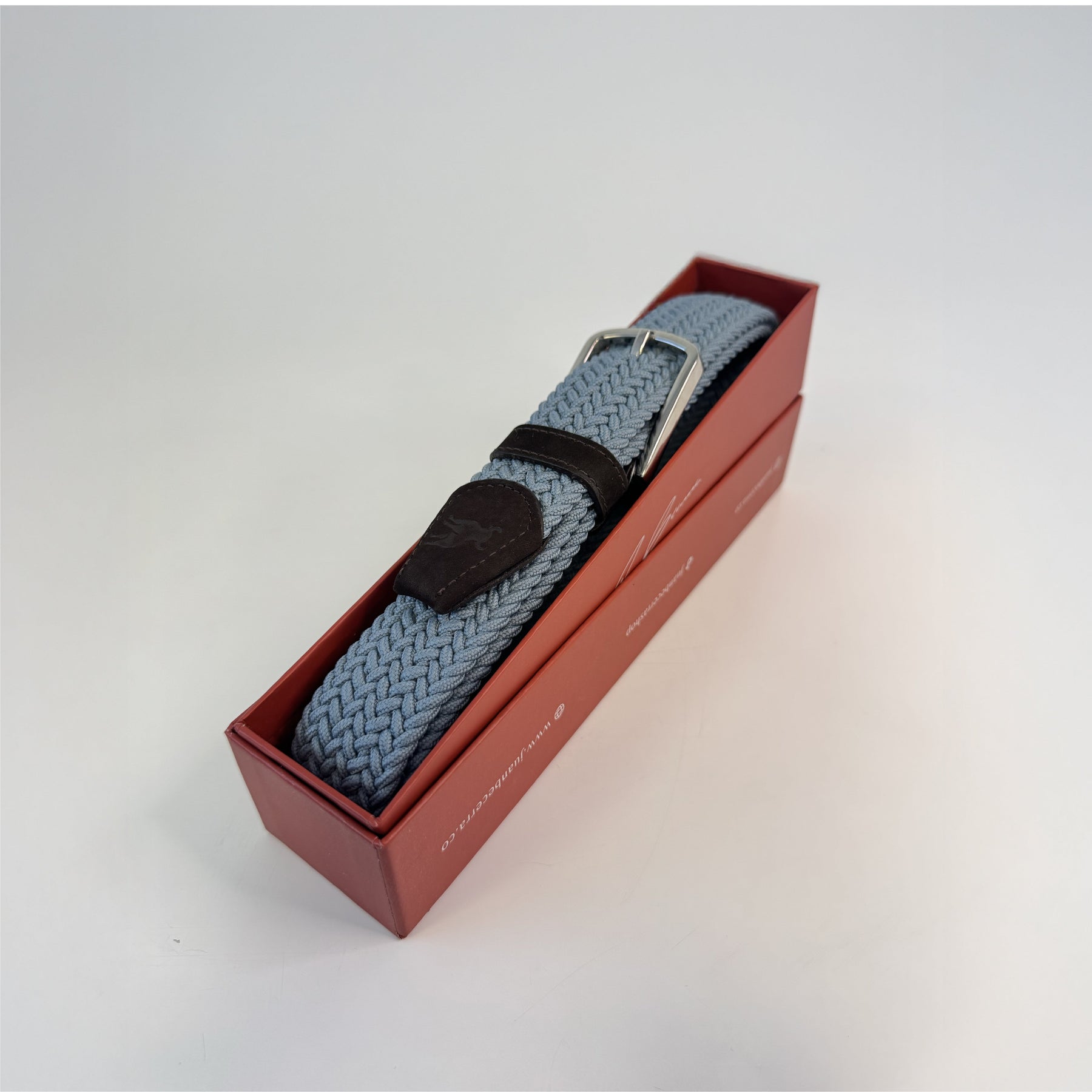 Materiales: Reata en nylon y poliéster, acabados en cuero nobuck, hebilla niquelada.