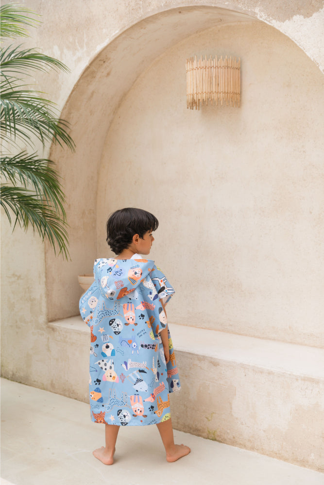 Poncho toalla estampado de microfibra (Niños de 6 a 8 años)