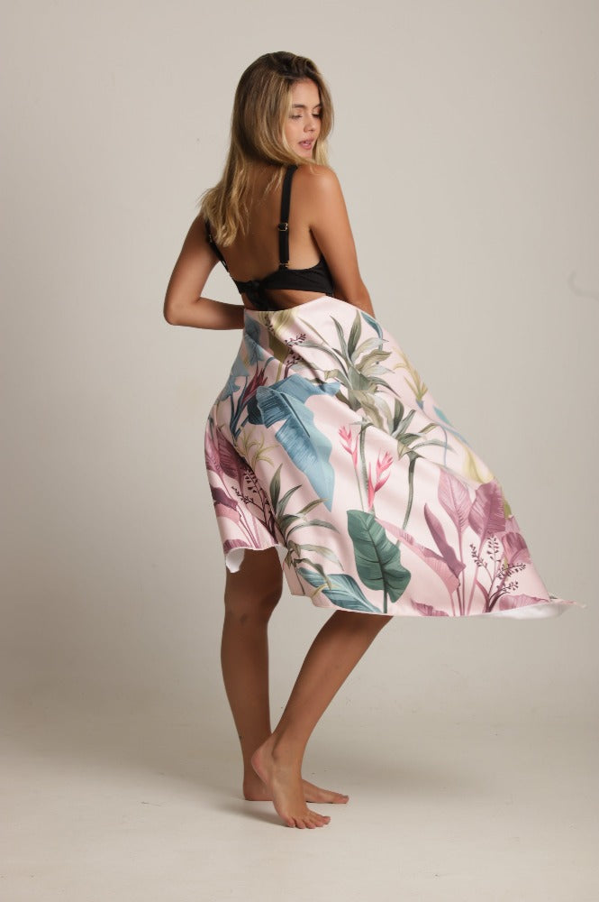 Toalla estampada de microfibra, incluye elástico para colgarla y facilitar su secado, vienen en empaque de tela para que la lleves a todas partes!