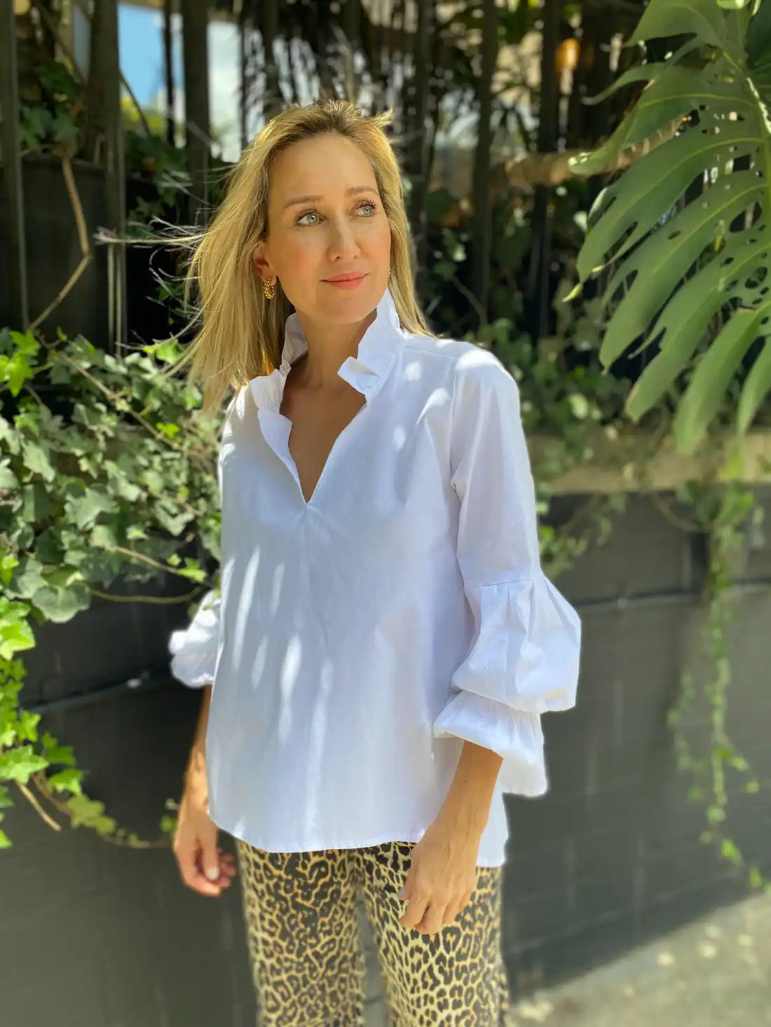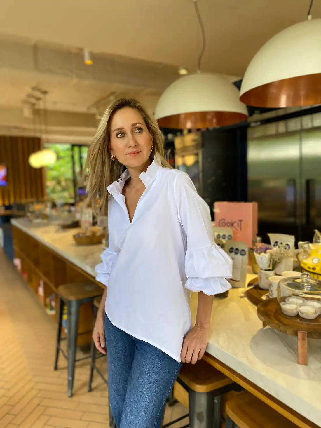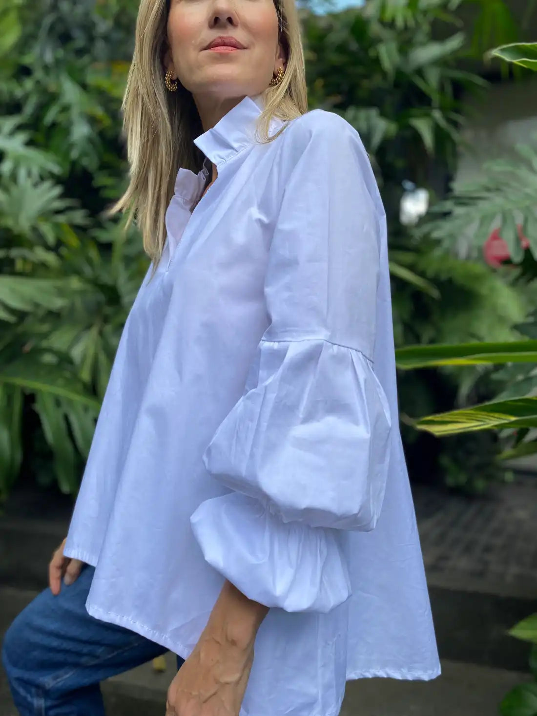 Diseñado para mujeres que aman sentirse frescas, sofisticadas y libres en cada momento. Este top es perfecto para acompañarte desde un café casual hasta una tarde de un cocktail inesperado. Confeccionado en 100% algodón, presenta una silueta fluida con cuello en V y mangas largas englobadas, que aportan un aire romántico y femenino. Los acabados suaves y el diseño atemporal lo convierten en un básico versátil para tu armario.