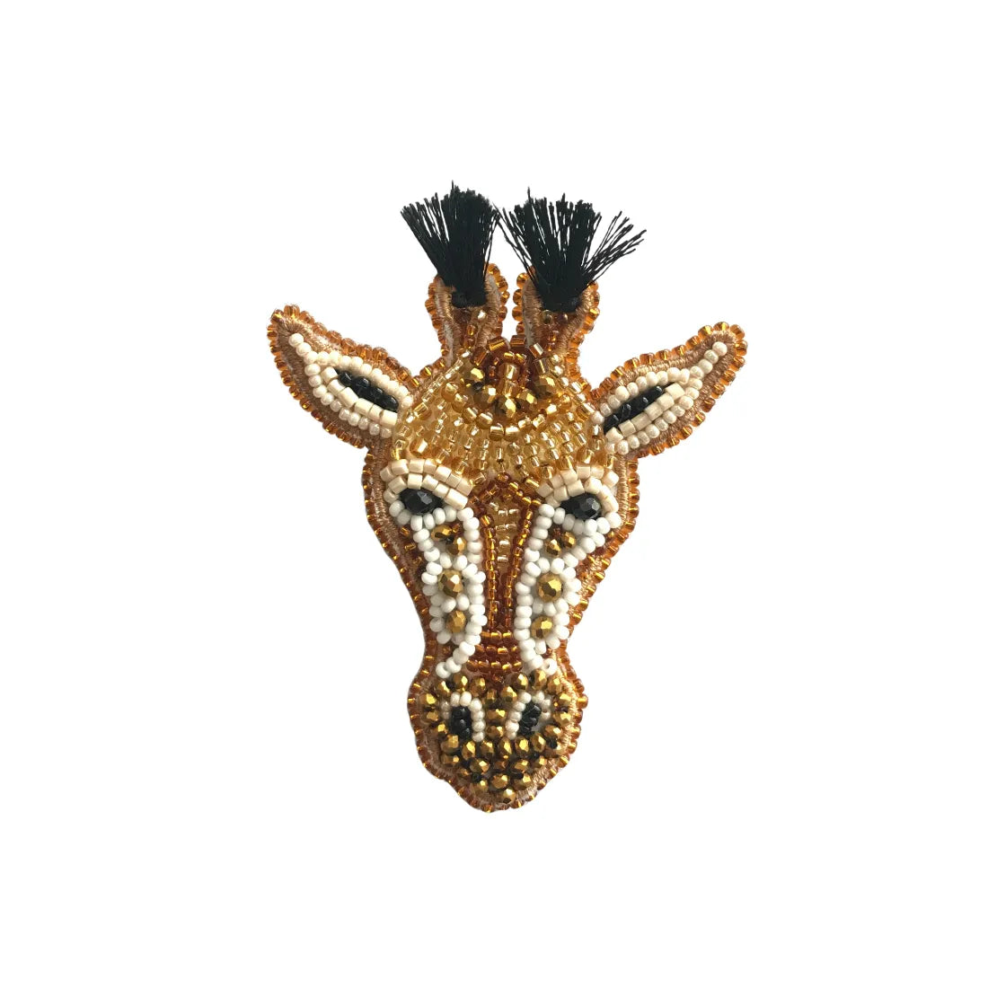 PUNK GIRAFFE Una versión atrevida y original de nuestra clásica jirafa: este broche fusiona lo tierno con lo rebelde. Bordado cuidadosamente a mano con mostacillas en tonos vibrantes y contrastantes, destaca por su cresta de hilos que le da ese aire “punk” tan divertido y auténtico.