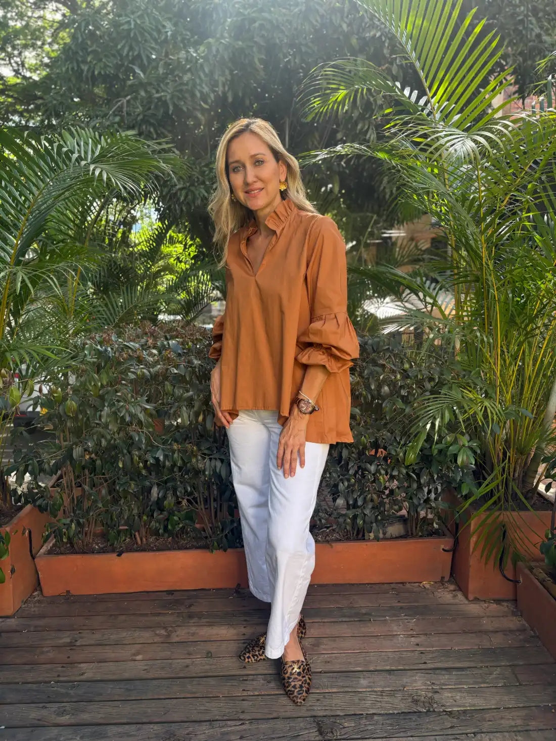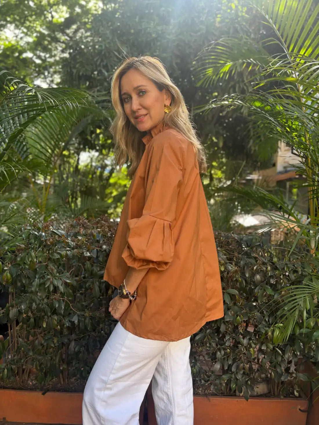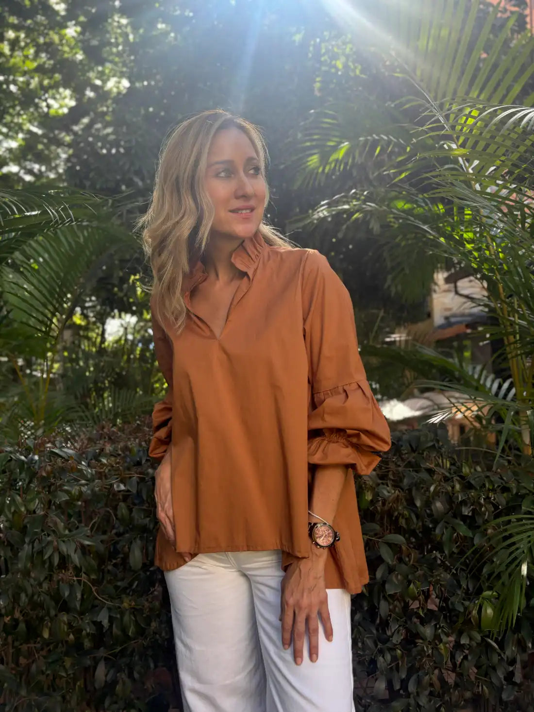 Diseñado para mujeres que aman sentirse frescas, sofisticadas y libres en cada momento. Este top es perfecto para acompañarte desde un café casual hasta una tarde de un cocktail inesperado. Confeccionado en 100% algodón, presenta una silueta fluida con cuello en V y mangas largas englobadas, que aportan un aire romántico y femenino. Los acabados suaves y el diseño atemporal lo convierten en un básico versátil para tu armario.