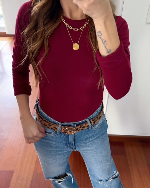 Body manga larga de talla única con ajuste perfecto y tejido de poliéster de alta calidad. Versátil, cómodo y fácil de combinar para cualquier ocasión.