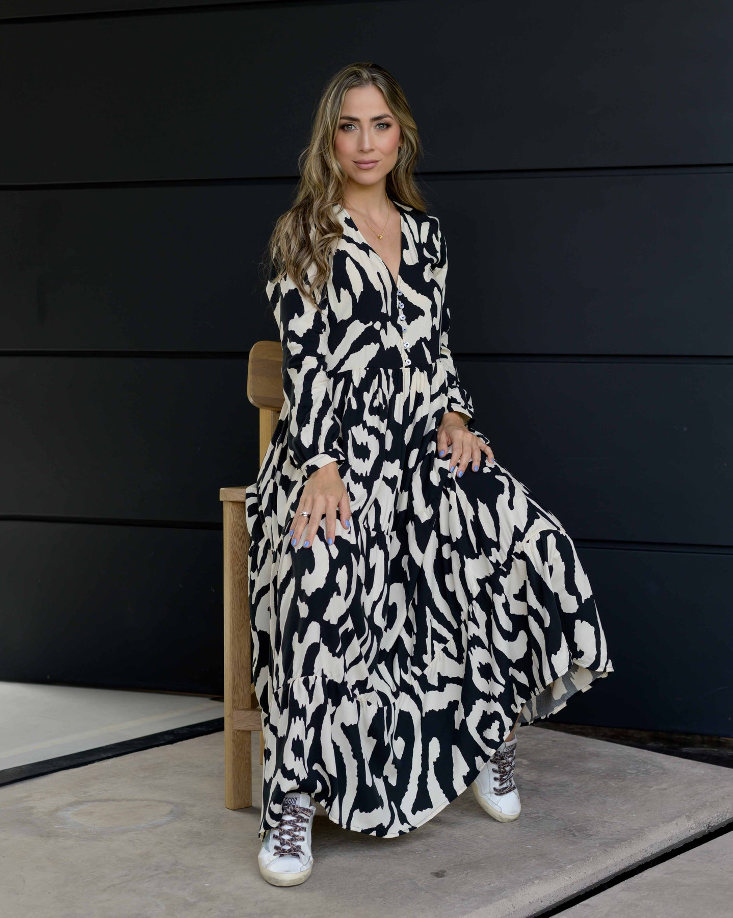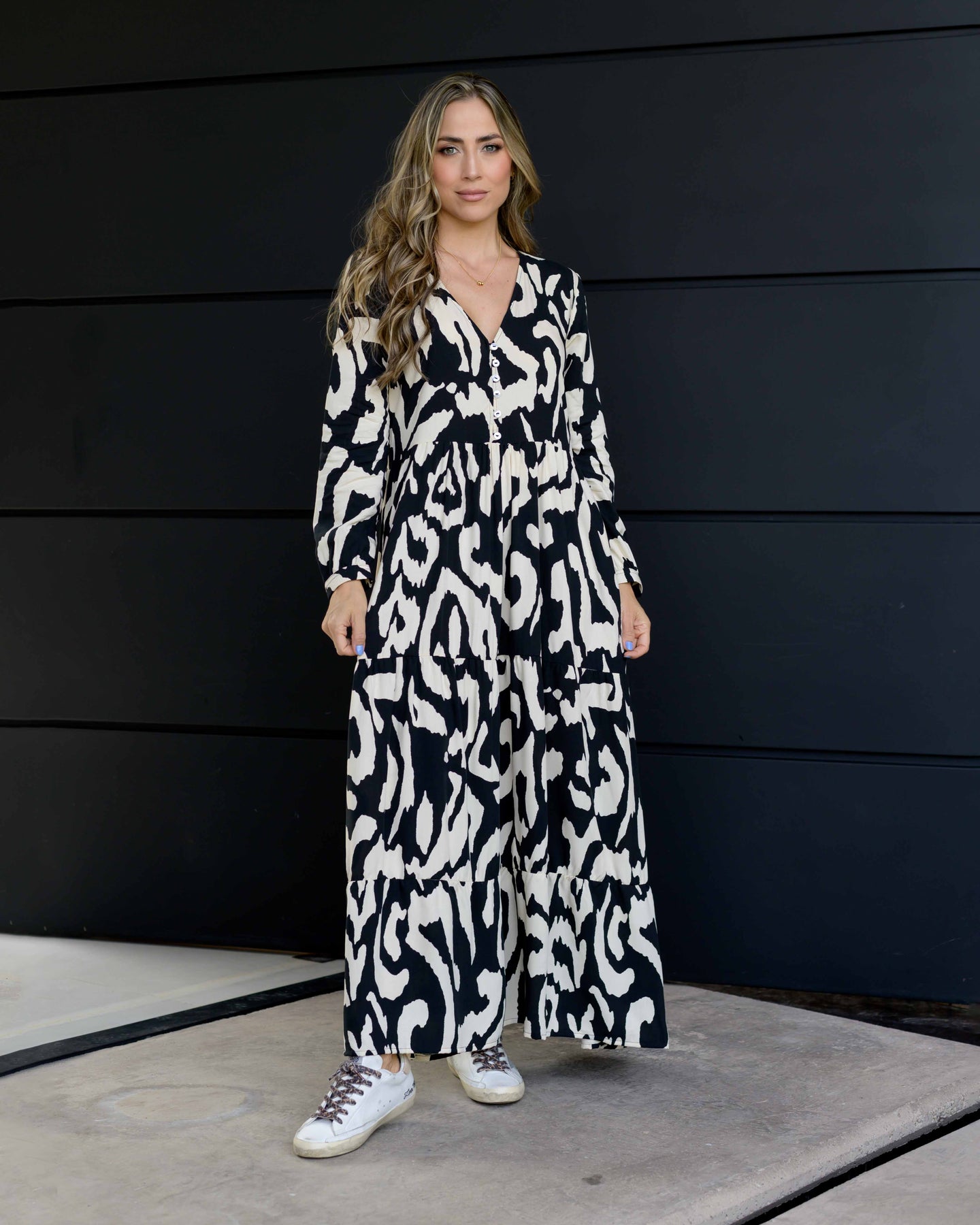 Descubre la elegancia del Vestido Nevada Lisboa. Confeccionado con 100% rayón, este vestido largo presenta un cuello en V y mangas largas para un look sofisticado. Además, cuenta con bolsillos laterales para mayor comodidad. Disfruta de la comodidad y el estilo en una sola prenda.